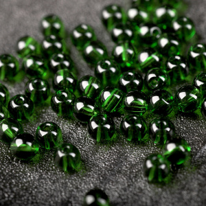 Бусина, стекло 4, цвет зеленый, 4 мм (уп 50+/-5 шт)