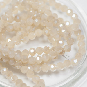 Бусина, непрозрачная, граненая, стекло, цвет бежевый перламутровый, 6 мм (уп 20 +/-2 шт)