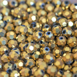 Бусина, стекло 4, граненая, цвет золотой, 4 мм (уп.30+/-5 шт)