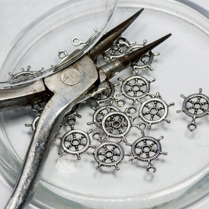 Подвеска металлическая "Штурвал", цвет античное серебро, 19x14x1 мм