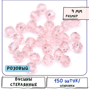Бусина, стекло 4, граненая, цвет розовый, 4 мм (уп.30+/-5 шт)