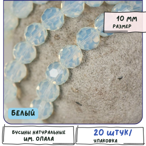 Бусина имитация опала, граненая, цвет белый, 10 мм (стренд 10 шт.)