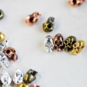 Бусина, металл "Череп", цветовой микс, 8.5x4.5x5.5 мм