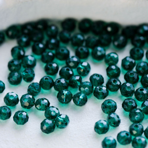 Бусина, стекло абакус 6, граненая, цвет зеленый, 6х5 мм