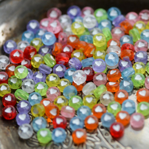 Бусина, акрил "Сердечки", плоская, прозрачный цветной микс/белый, 7x3.5 мм