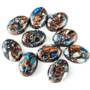 Кабошон им. варисцита, овальный, цвет медный/грязно-голубой, 25x18x7 мм