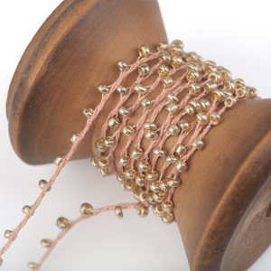 Бисер на нити, цвет розовое золото металлик, диаметр 2 мм