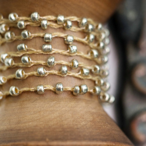 Бисер на нити, цвет серебро темное металлик, диаметр 2 мм