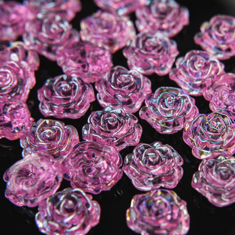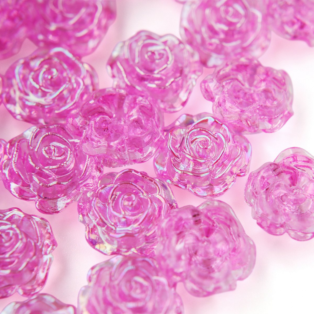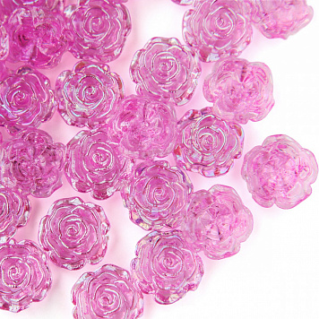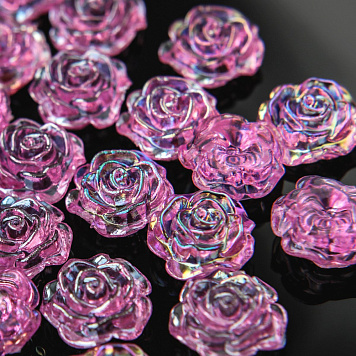 Бусина-кабошон, акрил "Роза", полупросверленная, цвет фуксия, 15x16x6.5 мм