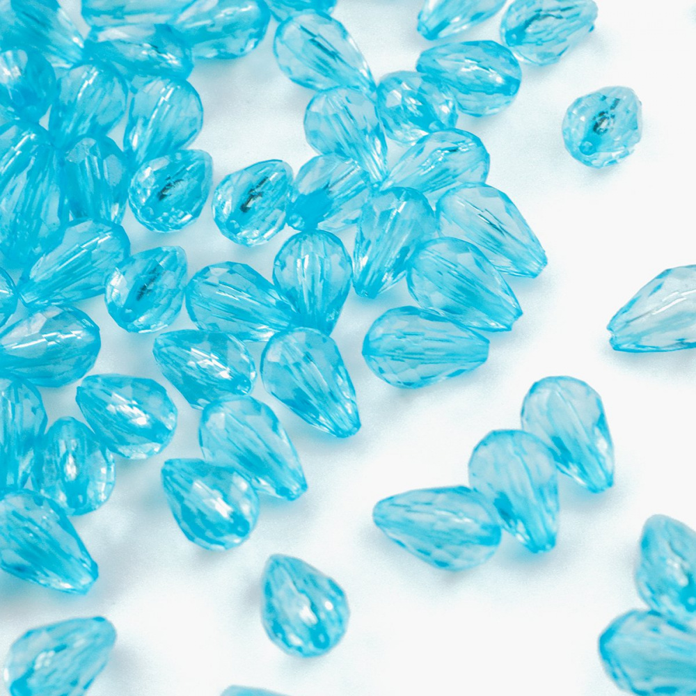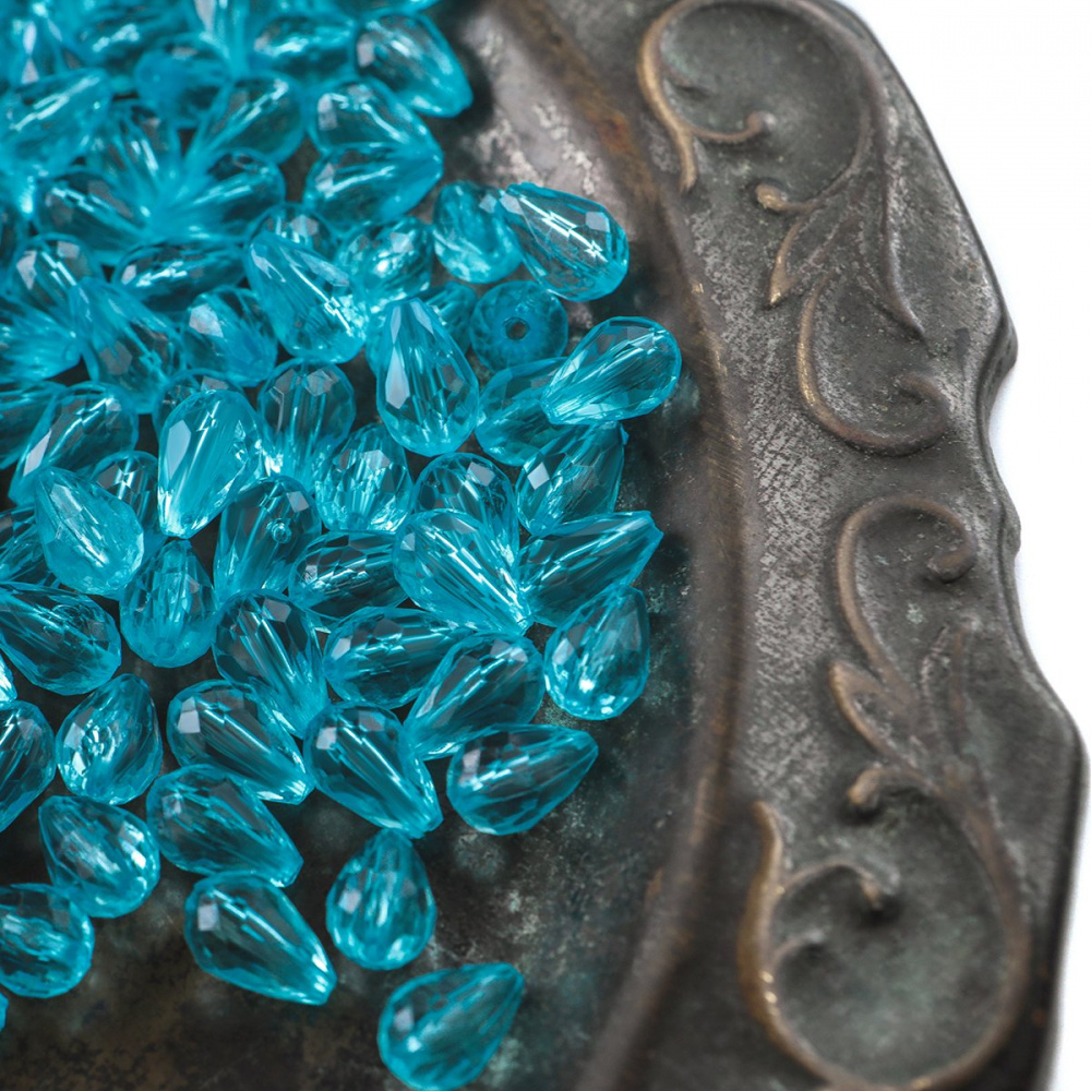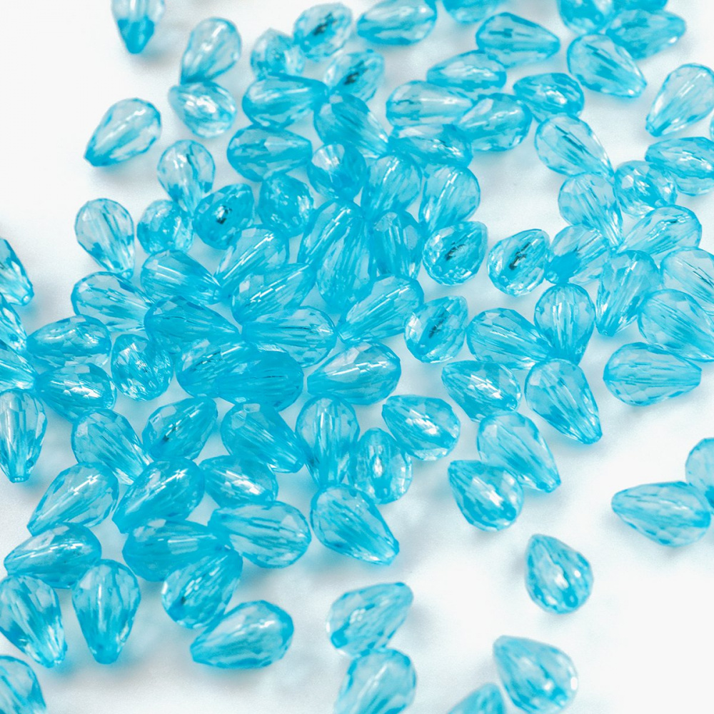 Бусина капля граненая, акрил, цвет яркий голубой, 12х8 мм