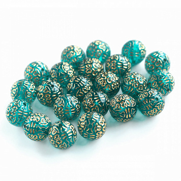 Бусина круглая "Антик", акрил, цвет сине-зеленый, 14 мм