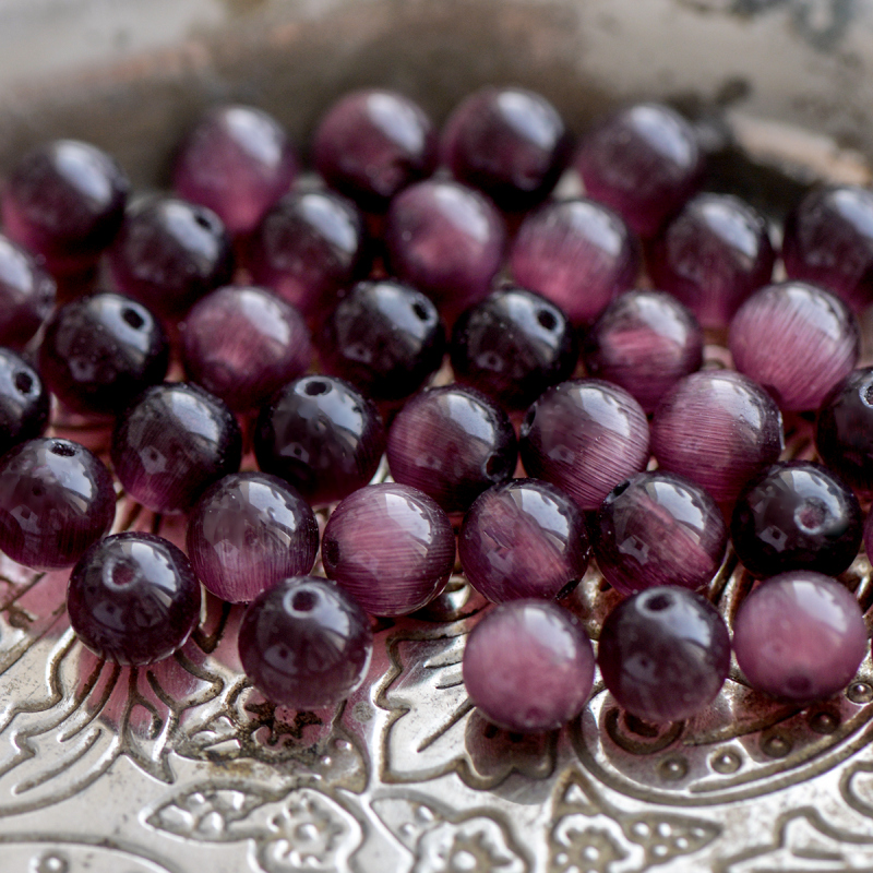 Бусина из стекла с эффектом кошачьего глаза, стекло, цвет винный.