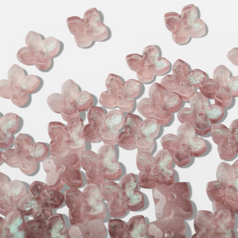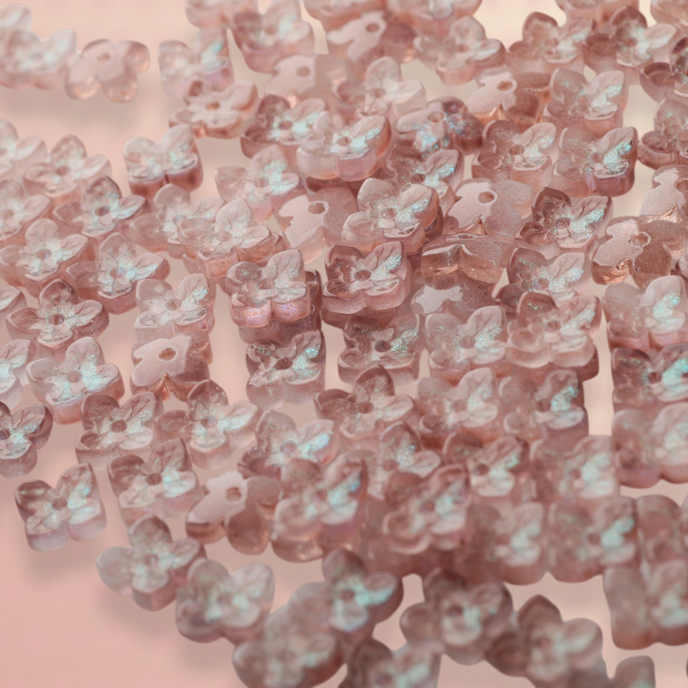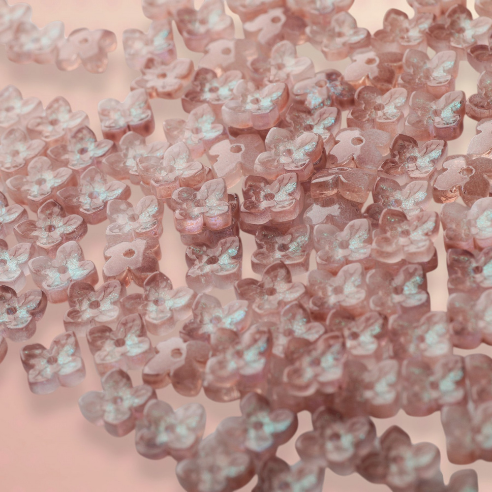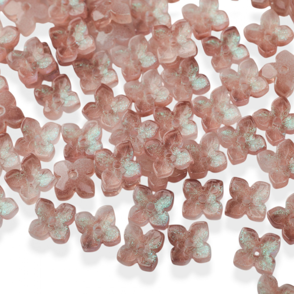 Бусина стеклянная в виде цветка с четырьмя лепестками.