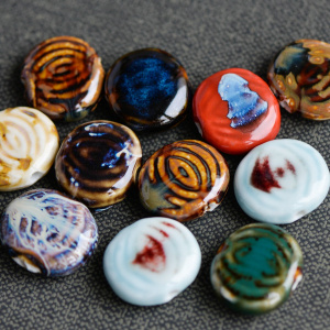 Фарфоровые и керамические бусины изготавливаются по старинной технологии. Каждая бусина создается вручную: ей придают форму и покрывают эмалью. Поверх эмали наносится рисунок.
