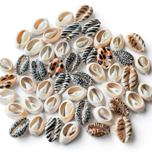 Бусина из ракушки, "Каури", с принтом, цветовой микс, 18-22x13-14x6-8 мм