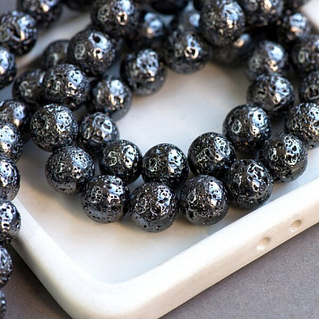 Бусина лава натуральная 12, цвет черный металлик, 12 мм