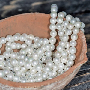 Этот вид искусственного жемчуга имеет класс А — хороший блеск, незначительные дефекты, форма близка к округлой и средняя толщина перламутра. Это отличное качество, близкое к таким гигантам, как Swarovski и Preciosa.