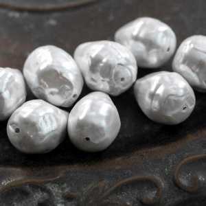 Shell Pearl — ракушечный жемчуг со стойким перламутровым покрытием, для создания используются природные материалы, поэтому он не вызывает аллергию. Основу из стекла аккуратно покрывают натуральным перламутром, бусине придается природная форма. Такому жемчугу не вредит влага, пот, духи. Яркий блеск, разнообразная цветовая палитра, изобилие форм и размеров, почти ровная поверхность, а главное доступная цена. Необходимо учитывать тяжесть бусин при создании украшений.