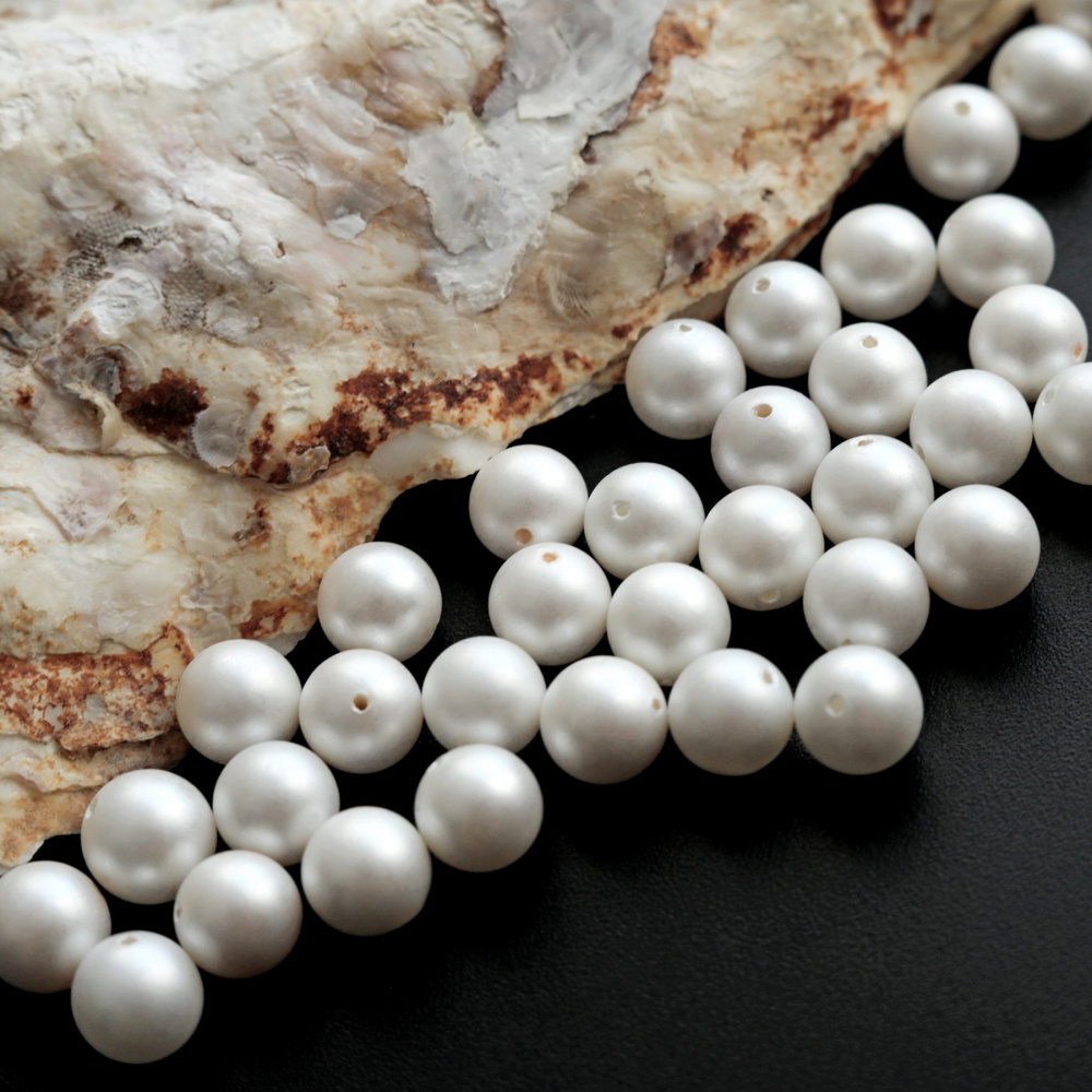 Бусина круглая с матовой поверхностью из ракушечного жемчуга - Frosted. Эта разновидность искусственного жемчуга Shell pearl отличается высоким качеством перламутрового покрытия и приятным блеском. Подходит для качественной замены натурального культивированного жемчуга, имеет правильную круглую форму.