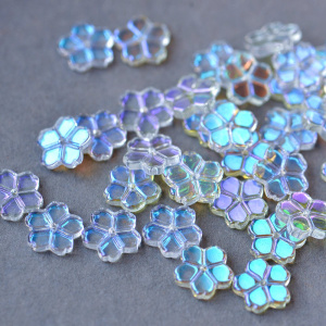 Бусина "Гардения", стекло, цвет прозрачный АВ, 11.5x12x2.5 мм