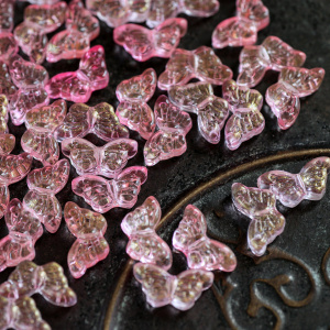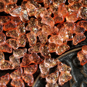 Бусина "Бабочка ночная" стекло, лососево-розовый с фольгой, 15x8x4.5 мм