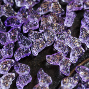 Бусина "Бабочка ночная" стекло, св.сиреневый с фольгой, 15x8x4.5 мм