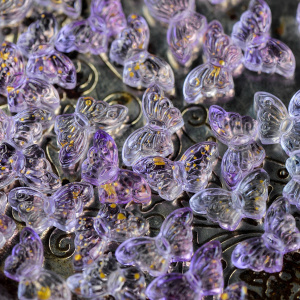 Бусина "Бабочка ночная" стекло, сиреневый с фольгой, 15x8x4.5 мм