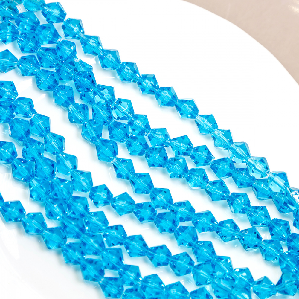 Бусина, стекло биконус 6, цвет голубой, 6 мм
