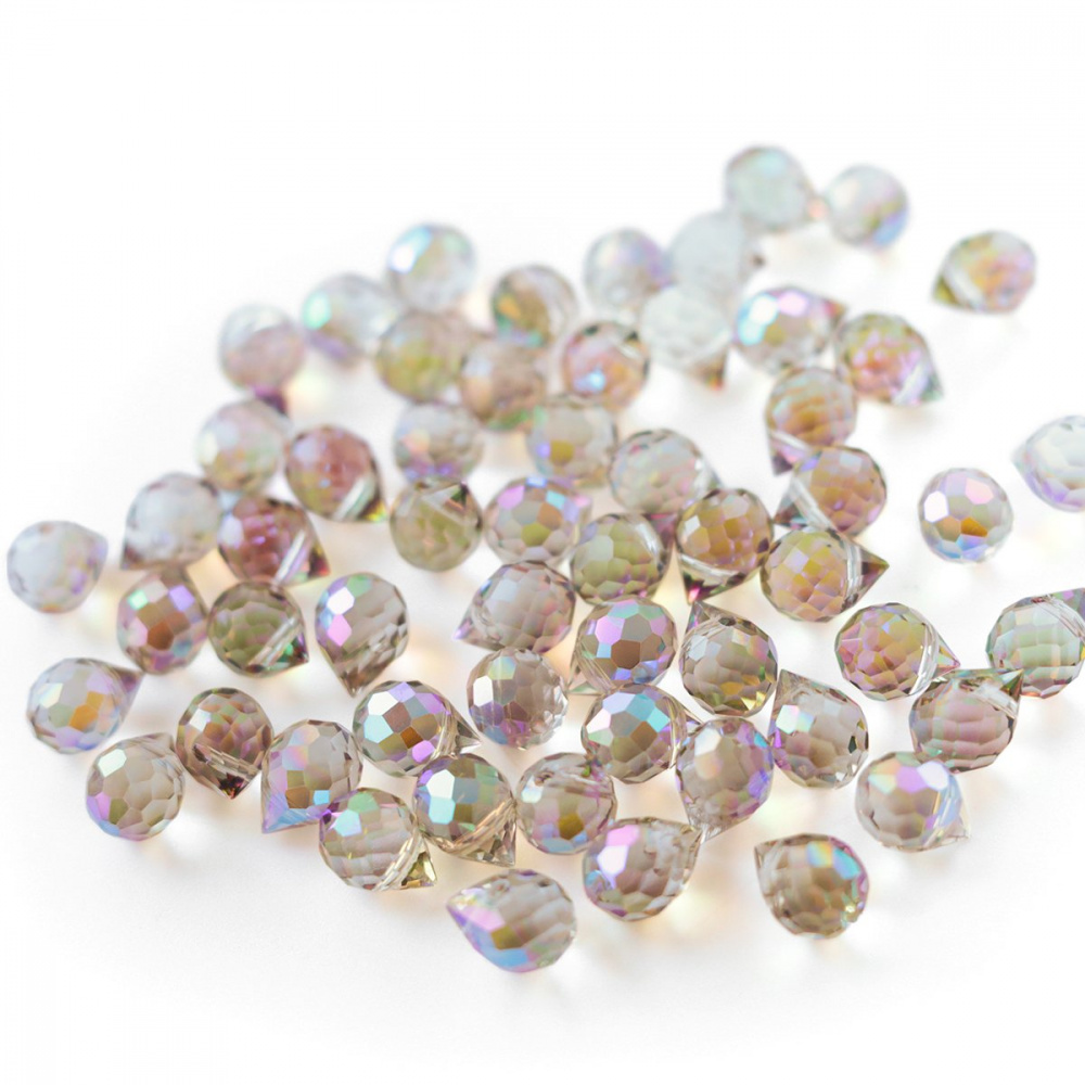 Бусина "Капля", граненая, стекло, цвет сиреневый АВ, 10-11x8 мм