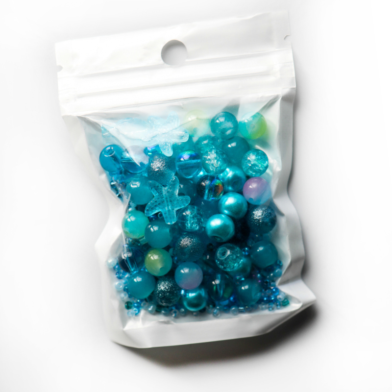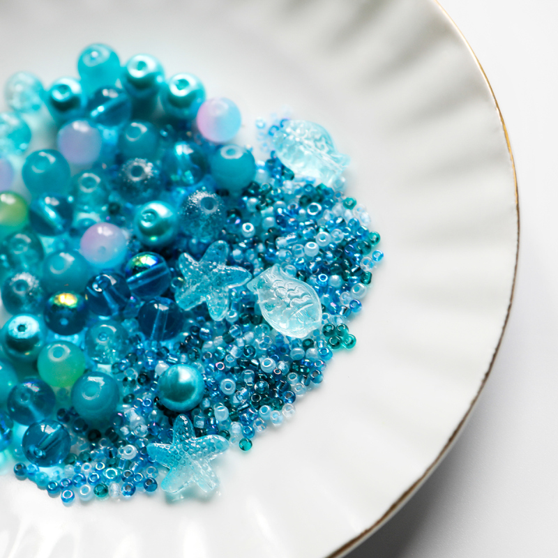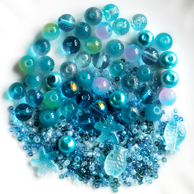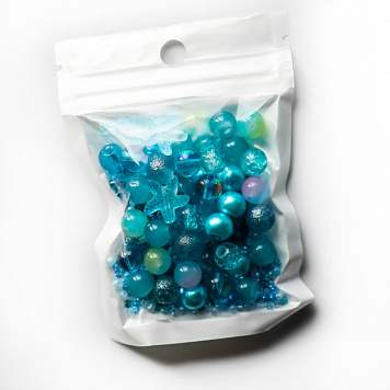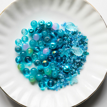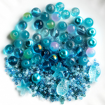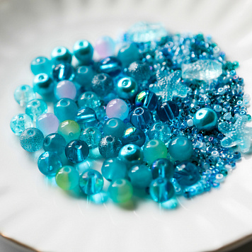 Бусина, стекло, цвет голубой, размерный микс 2-14 мм (уп 45 г)