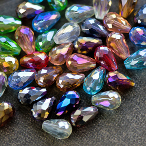 Бусина "Капля", граненая, стекло, цветовой микс, 15х10 мм