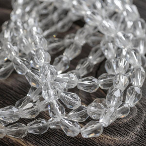 Бусина "Капля", граненая, стекло, цвет прозрачный, 8х6 мм
