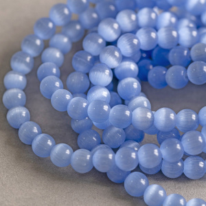 Бусина "Кошачий глаз" стекло, голубой барвинковый, 5 мм
