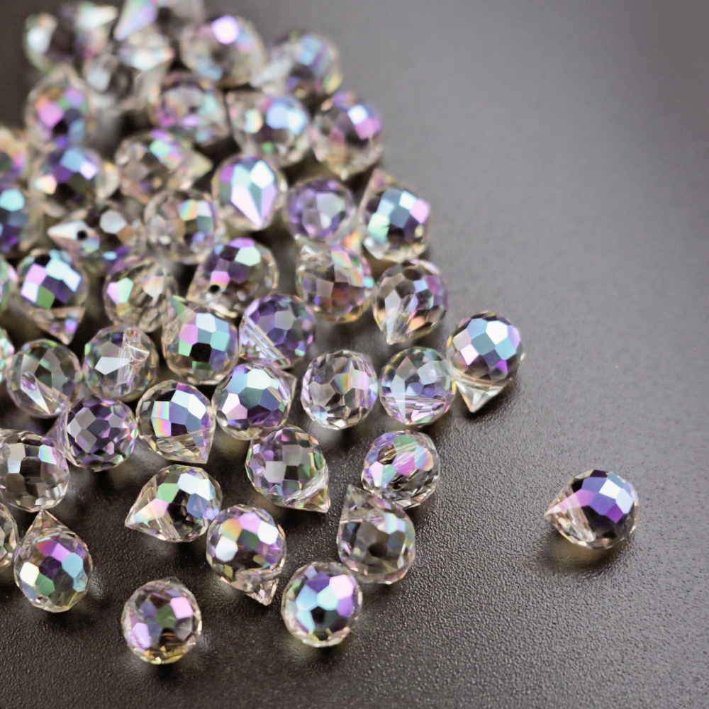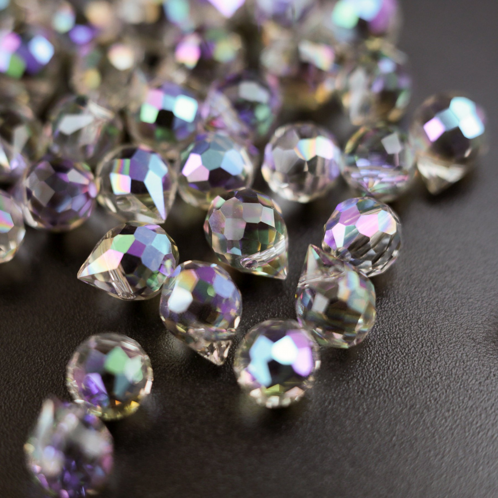 Бусина "Капля", граненая, стекло, цвет сиреневый АВ, 10-11x8 мм
