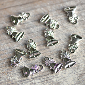 Подвеска металлическая "Колокольчик рождественский", античное серебро, 22x18x4 мм