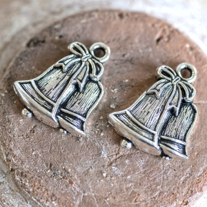 Подвеска металлическая "Колокольчик рождественский", античное серебро, 22x18x4 мм