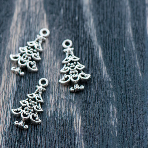 Подвеска металлическая "Елочка", цвет античное серебро, 24x13.5x2 мм