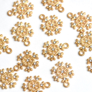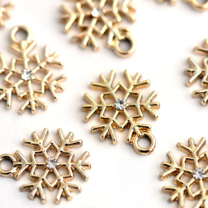 Подвеска металл "Снежинка новогодняя", стразы, цвет золото, 16x13x3 мм
