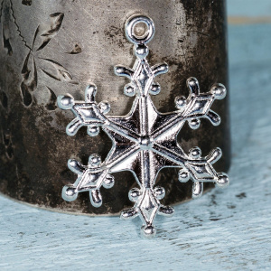 Подвеска металлическая "Снежинка морозная", цвет серебро, 29x22x3 мм