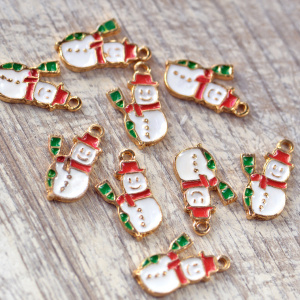 Подвеска металлическая "Снеговичок", эмаль, цвет золото, 21.5x12.5x2 мм