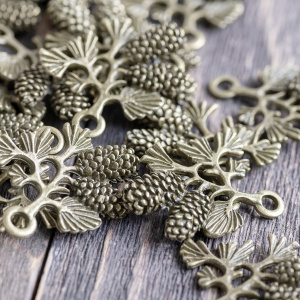 Подвеска металлическая "Веточка с шишками", цвет античная бронза, 33х31х5 мм