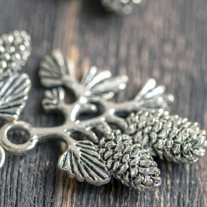 Подвеска металлическая "Веточка с шишками", цвет античное серебро, 33х31х5 мм