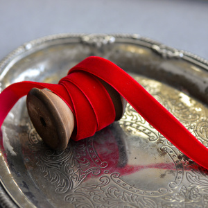 Лента, бархат, цвет красный, ширина 12.7 мм