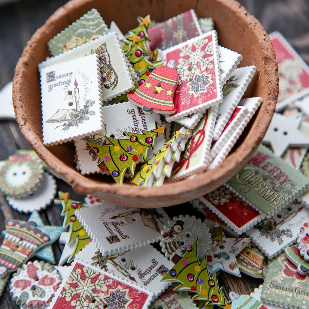 Бусина-пуговица "Винтаж", дерево, новогодняя тематика, 20-34 мм