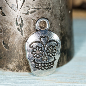 Подвеска металлическая "Череп Калавера", античное серебро, 18x12x3 мм