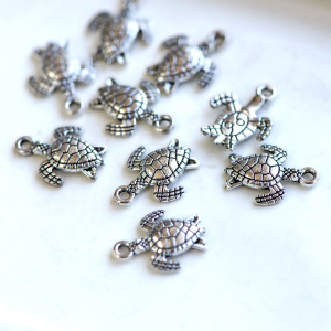 Подвеска металлическая "Черепашка", античное серебро, 16x12.4x2.2 мм