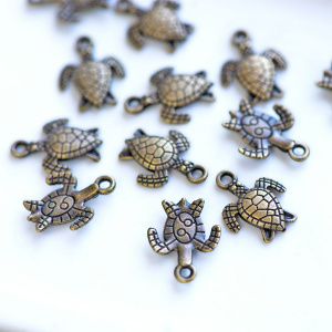 Подвеска металлическая "Черепашка", античная бронза, 16x12.4x2.2 мм