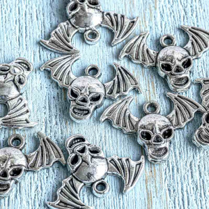 Подвеска металлическая "Череп c крыльями", античное серебро, 17x23x10 мм