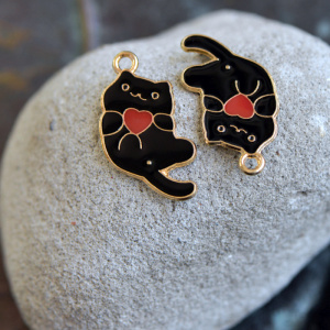 Подвеска металлическая "Котейка", эмаль, цвет черный, 25x21x1 мм