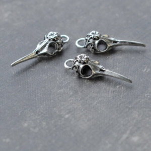 Подвеска металлическая "Череп птичий", античное серебро, 41.7x13.5x11 мм